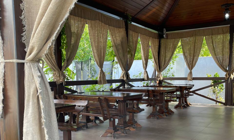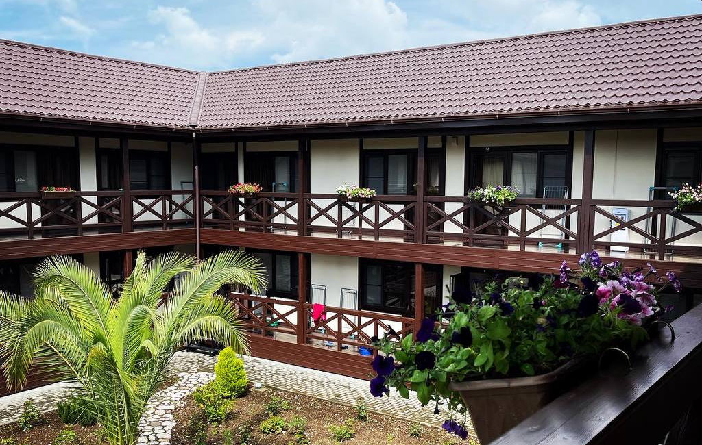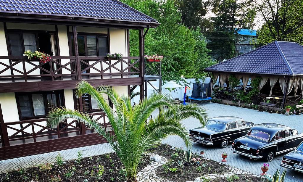 Гостевой дом «Три павлина» находится в абхазском поселке Цандрипш, расположенном всего в 10 минутах езды от российско-абхазской границы. В поселке развита курортная инфраструктура — работают столовые, кафе, продуктовые магазины, среди достопримечательностей — Белые Скалы, каньон горной реки Хашупсе и руины древнего византийского храма. Двухэтажный корпус гостевого дома находится в 200 метрах от моря. В распоряжении гостей 28 комфортабельных номеров с удобствами. Все номера оснащены отдельными санузлами с душем, в комнатах есть Wi-Fi, спутниковое телевидение, кондиционер, холодильник и фен. На территории, украшенной южными растениями, работает кафе-бар с абхазской и европейской кухней, организована зона для барбекю с мангалами. Вечером гости могут послушать музыку и потанцевать, а днем отдохнуть возле небольшого бассейна на теневых террасах и площадках. Все желающие могут арендовать велосипеды для прогулок по окрестностям. Всего в паре минут ходьбы — песчано-галечный пляж с лежаками, навесами и раздевалками.